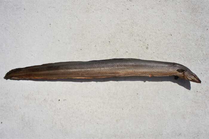 Preparation: place the smoked eel on a clean surface with its back facing you. Make sure the skin is still on.